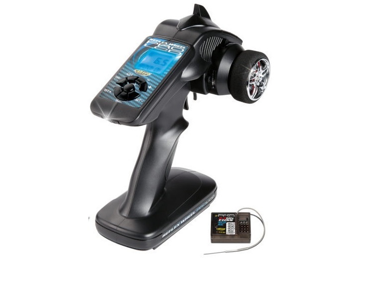 2.4 GHz ile profesyonel kontrol Bu yeni 2.4 GHz uzaktan kumanda sistemi modelinizi profesyonelce kontrol ediyor! Modern krom jant tasarımına sahip, fren pabuçlu direksiyon, kaymayı önleyen kauçuk kaplaması sayesinde oldukça hassas bir direksiyon hakimiyeti sağlıyor. Bu uzaktan kumanda sisteminin alıcısı 11.1V'a kadar tasarlanmıştır. Bu, HV yüksek akım servolarının ve ideal olarak benzinli motorlu modellerin de çalıştırılabileceği anlamına gelir. Büyük LCD ekran mavi renkle aydınlatılmış olup veriler kolayca okunabiliyor.