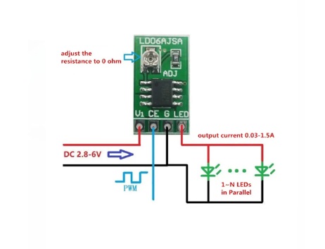 Tanım: Çalışma voltajı: DC 2,8-6V (3V 3,3V 3,7V 4,5V 5V 6V LED sürücüsü için mükemmel) Çıkış akımı: 30-1500MA Maksimum çıkış gücü: 9W 1-16 adet 2,8-6V LED'i kontrol edebilir (maksimum akım 1,5A'yı geçmez) Mevcut düzenlemeler: 1 ayarlanabilir dirençle; 2 PWM sinyal kontrolü ile Çip Sıcaklık Kontrolü LED Akım Koruması Hakkında Çalışma sıcaklığı aralığı Boyut: 18 mm x 10,3 mm x 2,8 mm Ağırlık: 0,56g